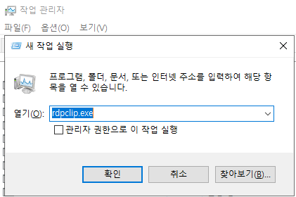 4. 새 작업 실행에서 rdpclip.exe 파일을 실행 합니다.
