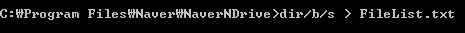 dir 명령어에 /b 옵션을 붙이면 아래와 같이 파일명들만 출력됩니다.